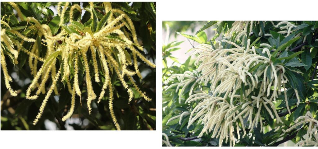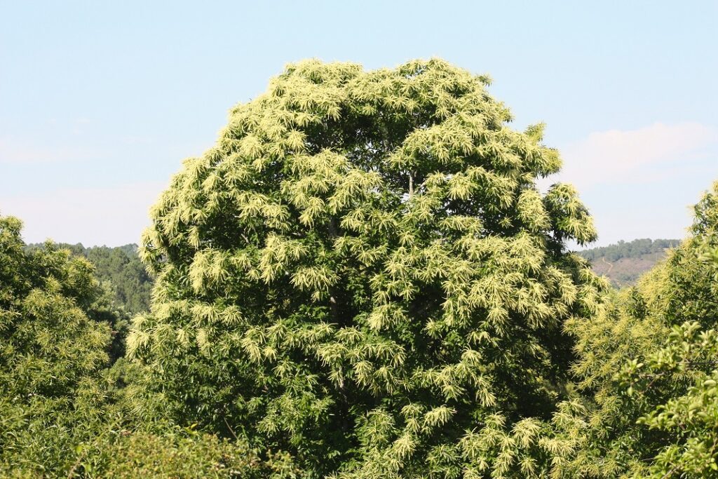 . . . una característica de la floración es que la flores masculinas y femeninas están en el mismo árbol. De ahí que el castaño con respecto a su forma de reproducción es una especie monoica.