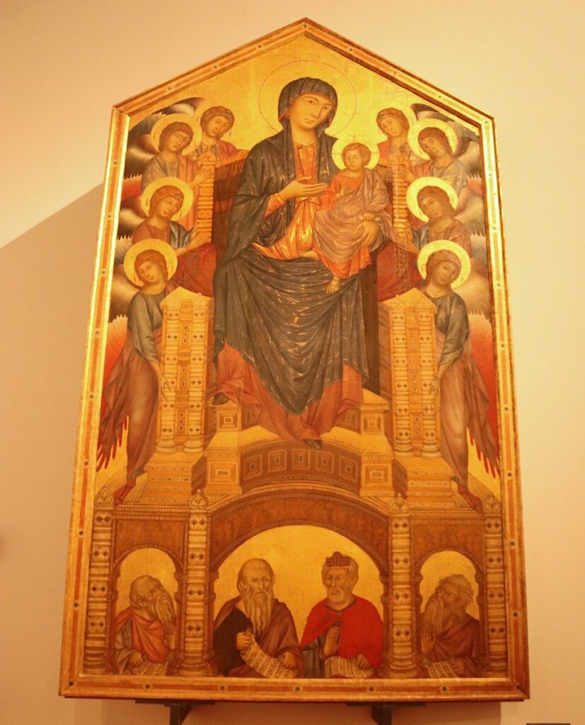 Madonna in trono col bambino ‘Maesta di santa trinitá’ – Tempera sobre madera. CIMABUE conocido como ‘Cinni di pepe’ (1272-1302).