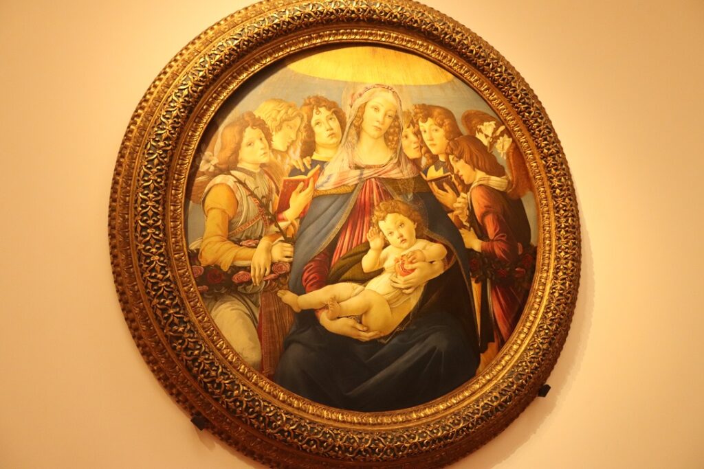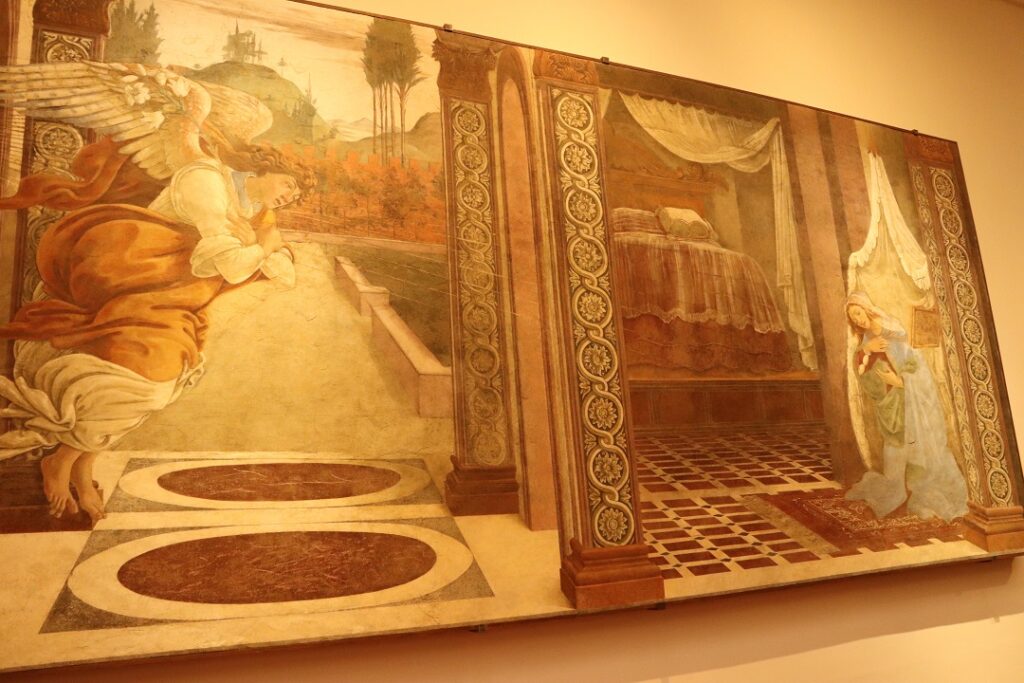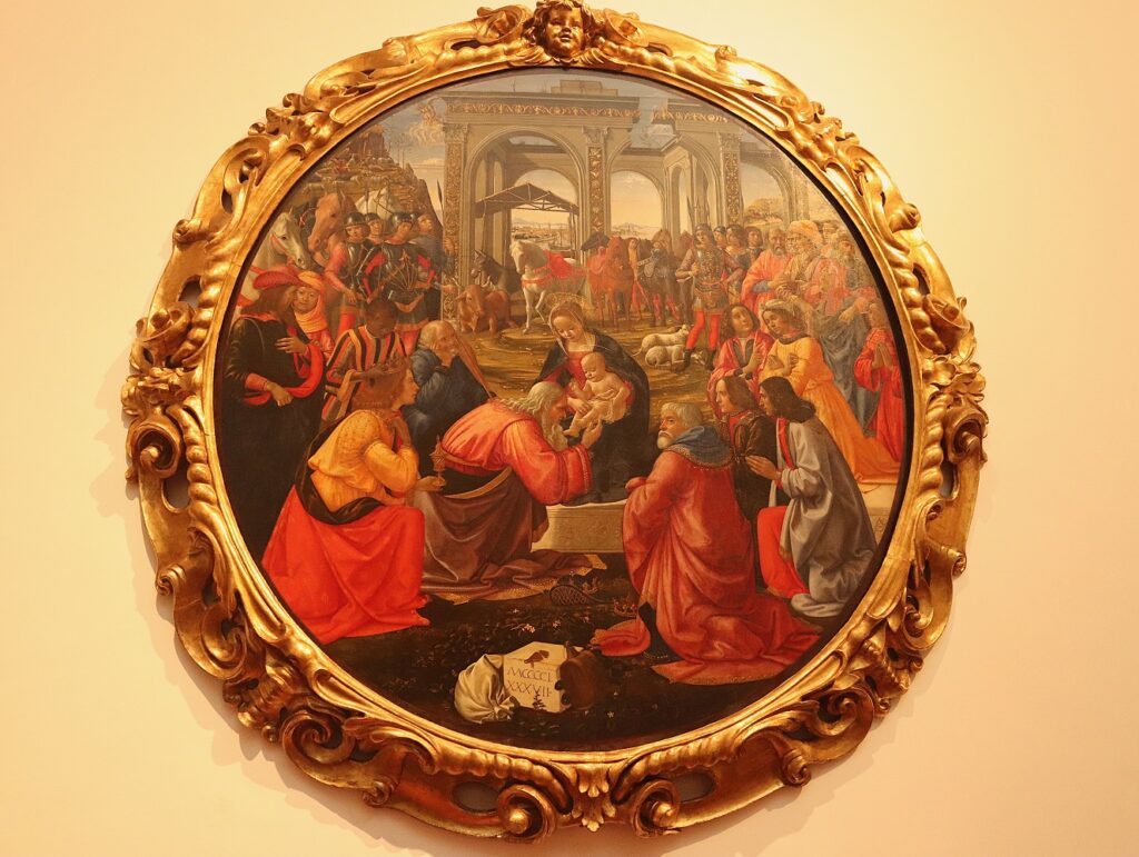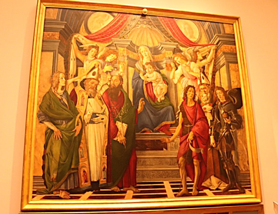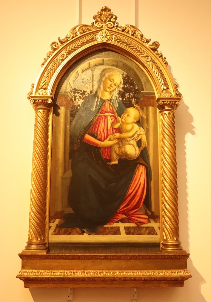 Fra Filippo di Tommaso Lippi fue un pintor que tuvo gran influencia sobre el genio BOTICHELLI en cuya sala, una de las mas visitadas de la galería, vamos a entrar. Estas pinturas, son el testimonio de la atmósfera refinada en la que Florencia estaba viviendo en el momento en que BOTICHELLI las realizó (alrededor de 1482-1484). Su verdadero nombre era Alessandro di Mariano di vanni Filipepi (1445-1510):