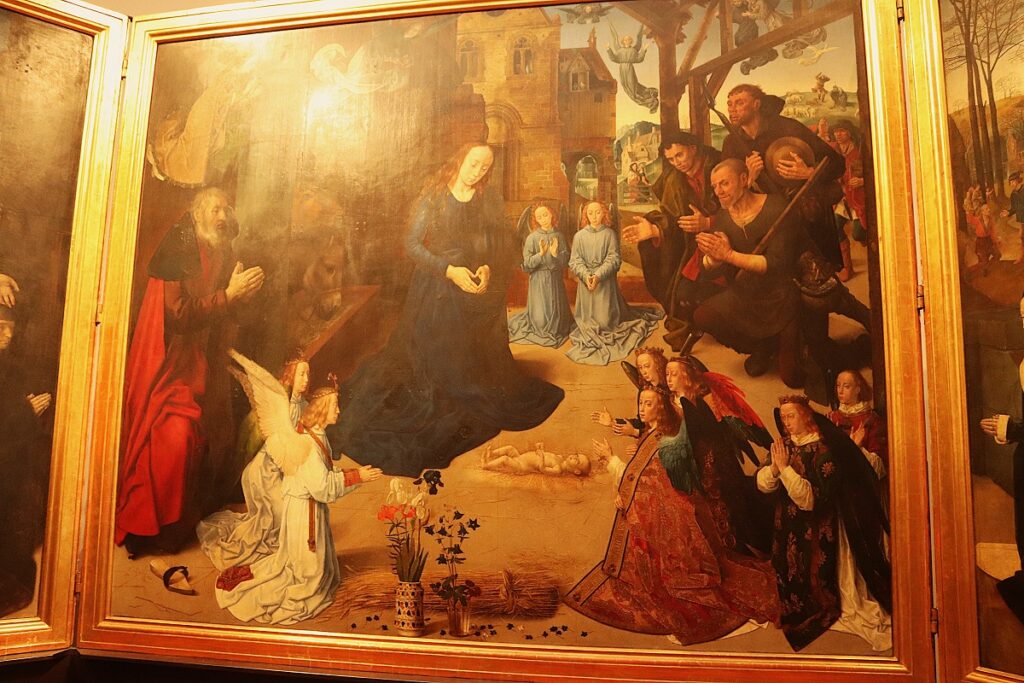 Tríptico Portinari adoración de los pastores, col angeli e i Santi Tommasso – Oleo sobre madera. HUGO VAN DER GOES (1440-1482) . . .