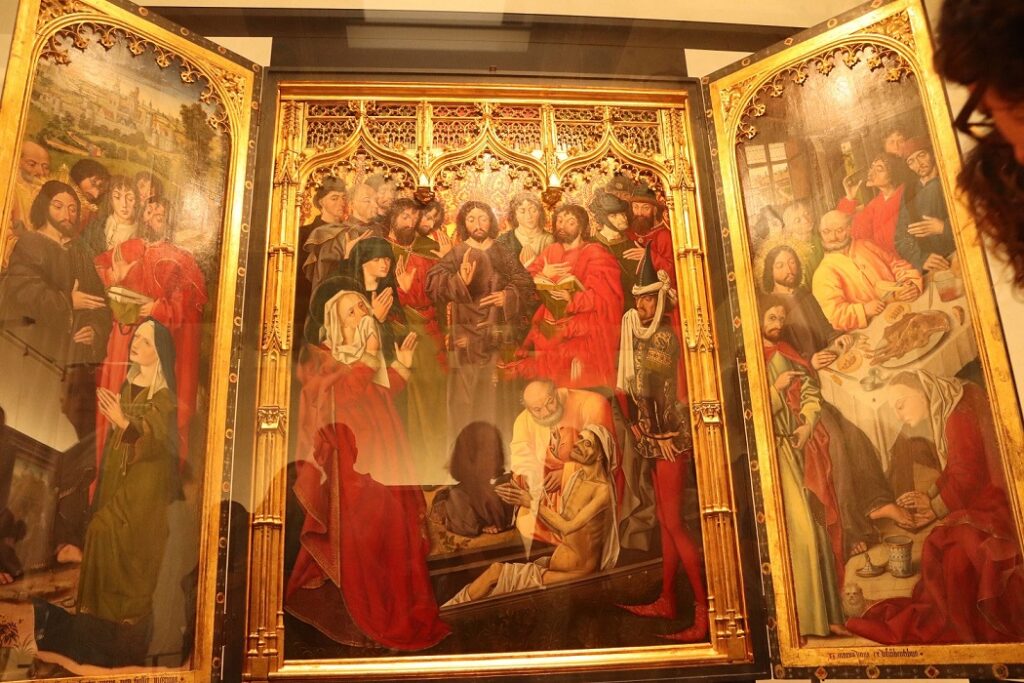 . . . el tríptico es una obra de grandes dimensiones. Incluso está pintado por la parte trasera de la madera.