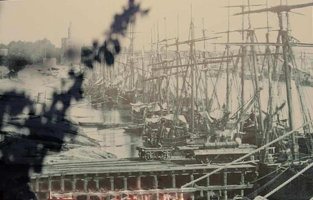 Arriba fotos del muelle de la Sal a finales del siglo XIX antes de comenzar el proyecto.