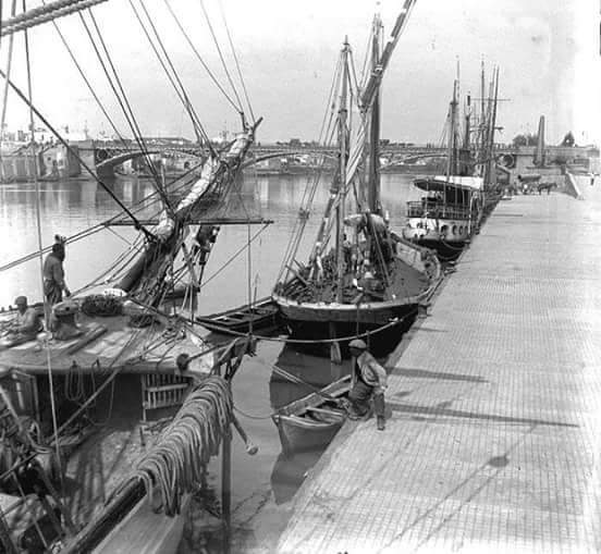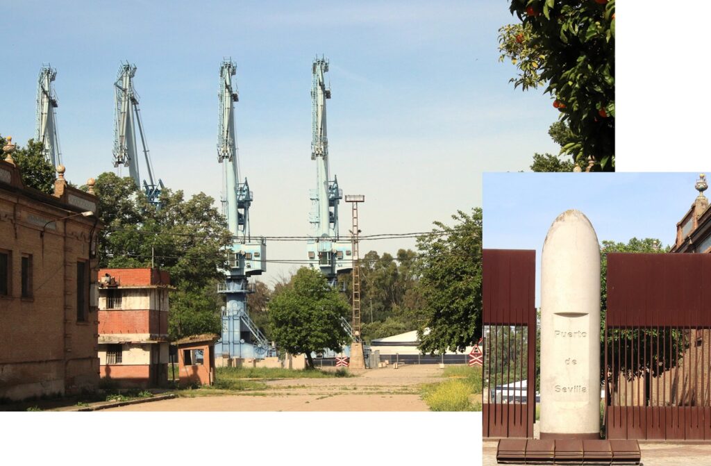 Según vemos en el plano de arriba, Delgado Brackenbury prolongó el muelle hacia el sur hasta el meandro de Punta del verde. Y en la década de los 1950 surgió una gran industria, el Astillero de Sevilla nació con el nombre ENE – Empresa Nacional Elcano- que comprendia los astilleros de Cadiz y Sevilla . . .