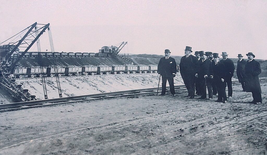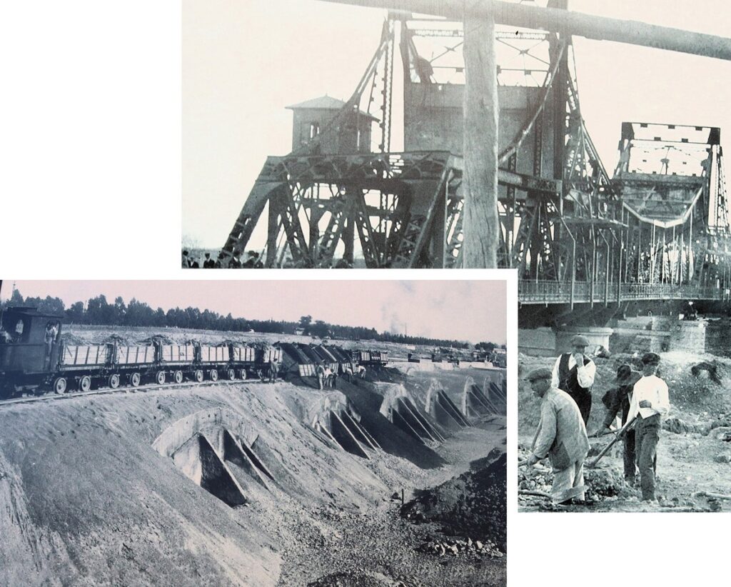 Obras de preparación de los terrenos del canal.- Las excavaciones de la corta de Tablada movieron mas de 7 millones de metros cúbicos de arenas. Una parte de este material se reutilizó para rellenar y acondicionar distintos espacios de la ciudad: la estación de Cádiz en San Bernardo, viviendas en el porvenir, el paseo de la Palmera, el prado de Santa Justa o la antigua y otros.