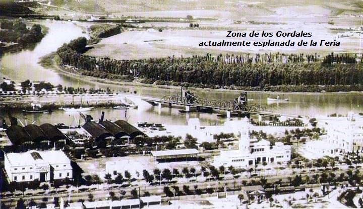 Construcción del puente Alfonso XIII, ingeniería de vanguardia. En la cabecera de la corta de Tablada se construyo el puente mas conocido como ‘Puente de Hierro’. (En la parte interior del antiguo meandro, zona de los Gordales está hoy ubicada la esplanada de la Feria https://blogdeltomi.es/portadas-de-la-feria-de-sevilla-siglo-xxi/ ) . . .