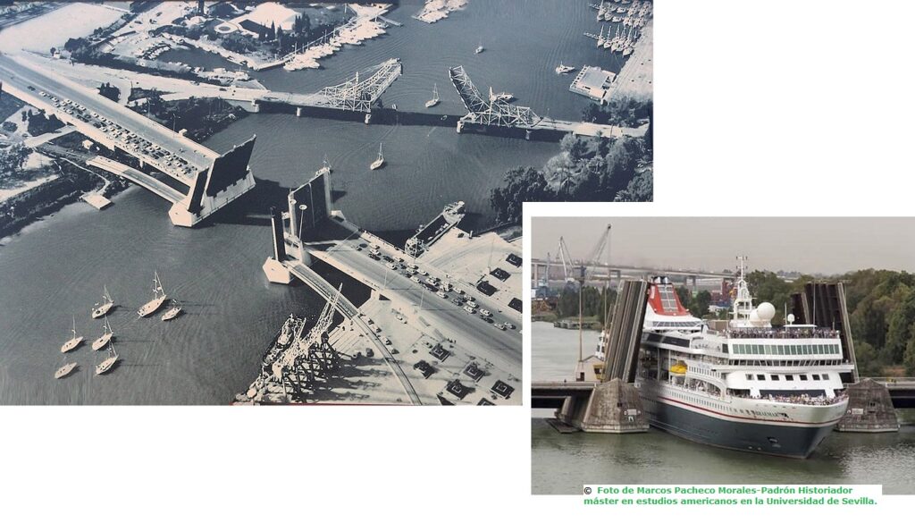 . . . Este diseño resolvió de manera eficiente la integración entre la navegación y la operativa portuaria. Dicha infraestructura, conectó con la margen derecha del Guadalquivir y las comunicaciones entre Sevilla y Huelva.