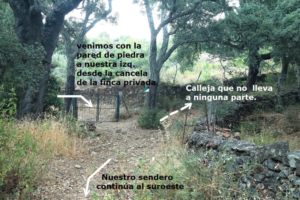 . . . y llegamos a una cancela de finca privada, la dejamos a nuestra izquierda y seguimos pegado a la pared de piedra . . .