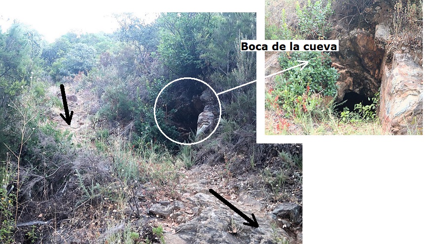 Nuestro camino continúa de frente bajando hasta la boca de la cueva. Paramos a ver cuanto es de profunda, pero no investigamos: