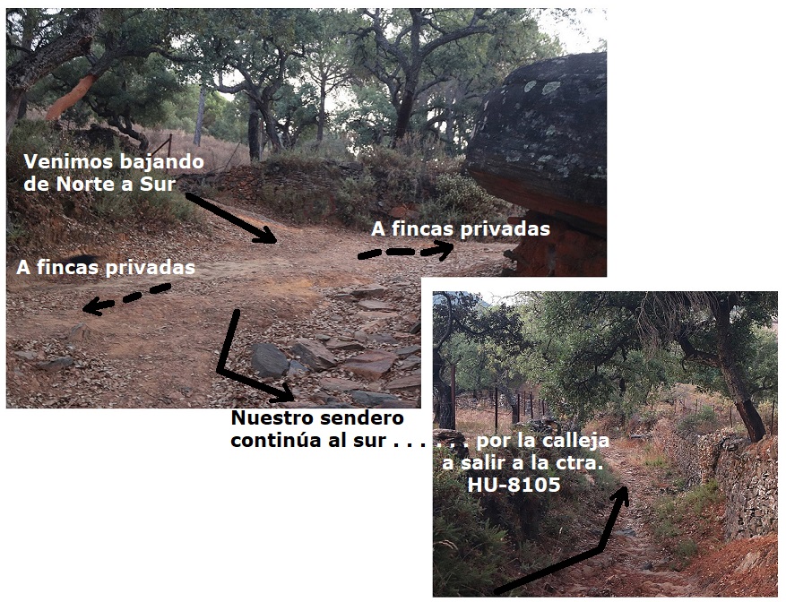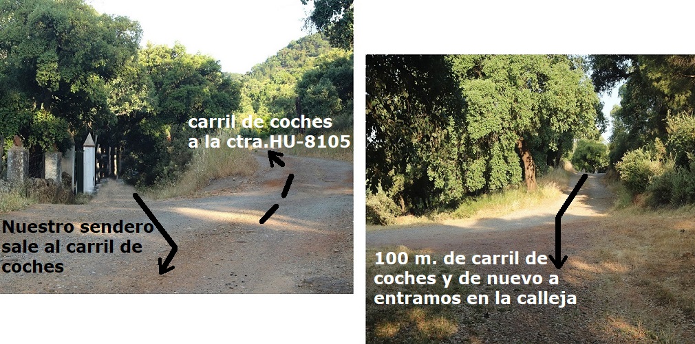Seguidamente terminamos la calleja y desembocamos en un nuevo carril que desde la ctra. HU-8105 va al suroeste hacia la ermita de San Bartolomé de Alajar . . .