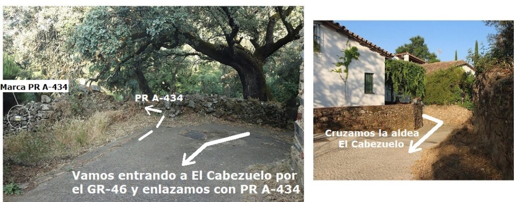 A continuación a la salida de El Cabezuelo vemos las flechas indicadoras de los senderos que hemos comentado. . .